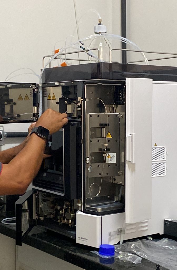 Além de acelerar investigações sobre a biodiversidade amazônica, o equipamento permitirá estudos de alta precisão na caracterização de princípios ativos, análise de pureza e quantificação de substâncias, fortalecendo não apenas os projetos em andamento, mas também abrindo portas para novas parcerias interinstitucionais. A instalação do HPLC ocorreu no dia 23 de setembro de 2025, marcando oficialmente o início dessa nova etapa para o LaQuiProN. E nos dias 24 e 25 de setembro, será realizado um treinamento específico voltado às instruções básicas de aquisição de dados no equipamento, destinada aos doutorandos Raphael Oliveira de Figueiredo (PPG Bionorte) e Luana Peixoto Barros (PPG Bionorte), que terão papel fundamental na utilização do cromatógrafo e no apoio às futuras análises.