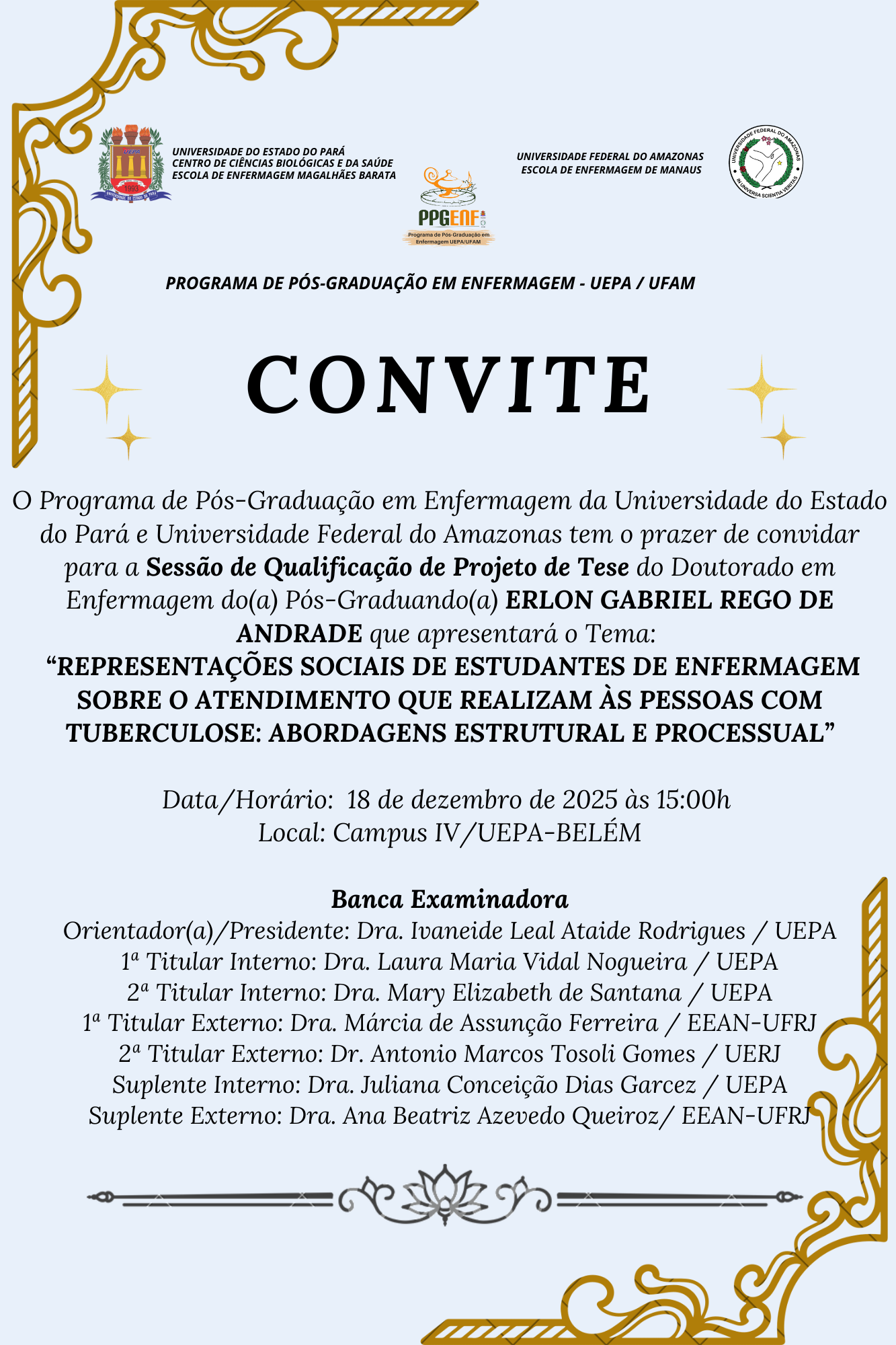 O Programa de Pós-Graduação em Enfermagem torna público as Qualificações de Projetos de Tese de…