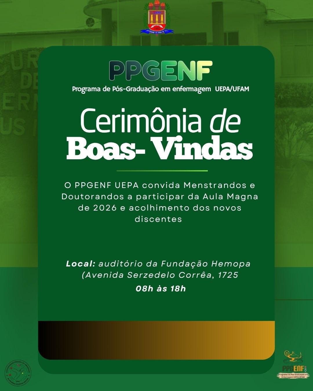 O Programa de Pós-Graduação em Enfermagem em nível de Mestrado e Doutorado Acadêmico (Stricto Sensu) vinculado ao Centro de Ciências Biológicas e da Saúde (CCBS) da Universidade do Estado do Pará (UEPA) é desenvolvido em associação com a Universidade Federal do Amazonas (UFAM).