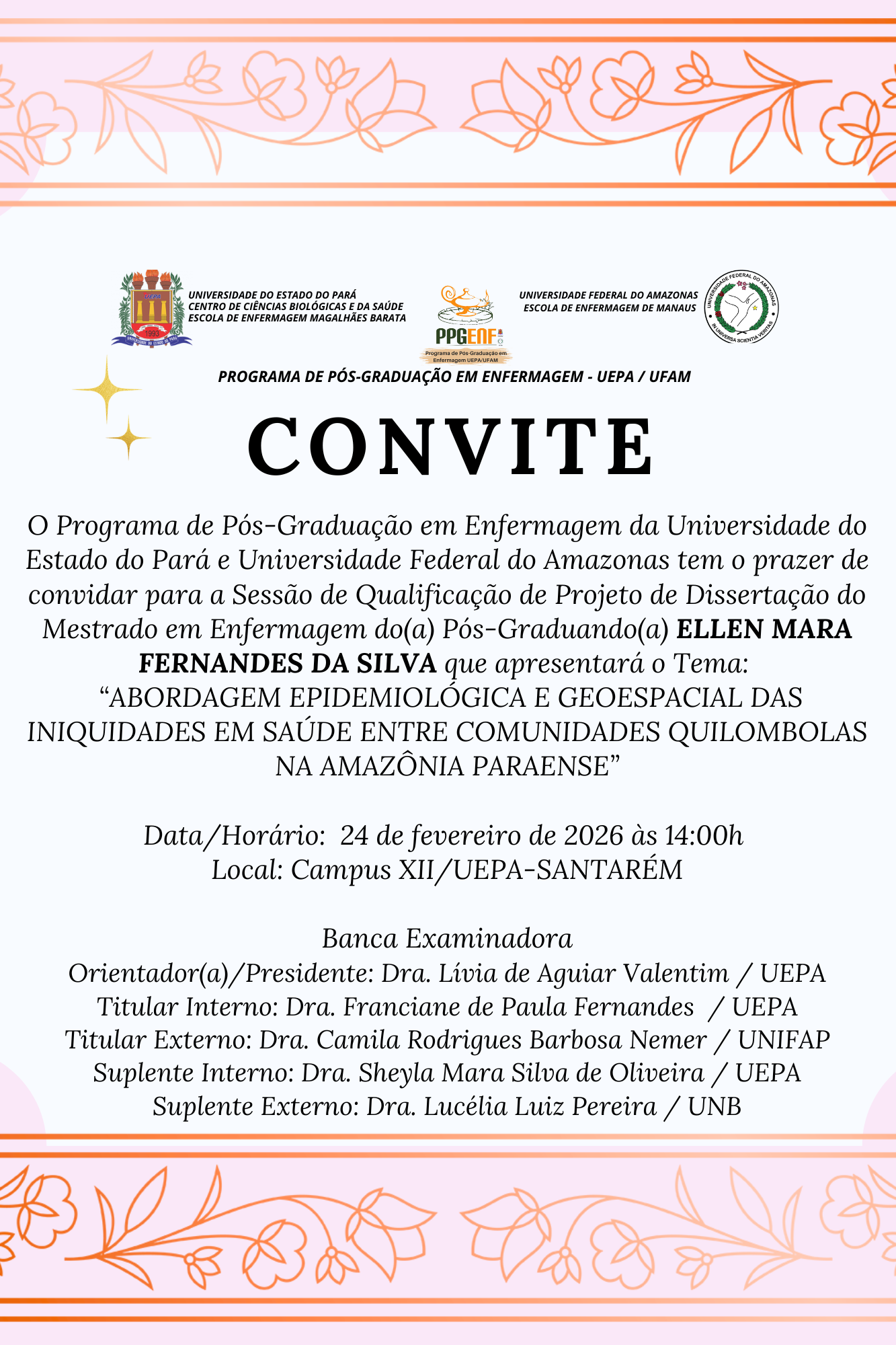 Dia 24 de fevereiro/2026 às 14:00h – Discente ELLEN MARA FERNANDES DA SILVA, acesse o CONVITE